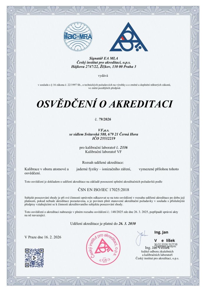 Odesláním formuláře souhlasíte se zpracováním zadaných osobních údajů a vaší IP adresy za účelem řešení poptávky služeb Kalibrační laboratoře VF metrologického střediska společnosti VF, a. s.. Osobní údaje zpracováváme v souladu s GDPR a našimi Zásadami zpracování osobních údajů.