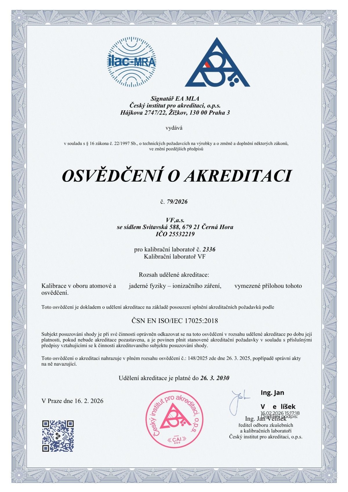 Osvědčení o akreditaci (PDF)